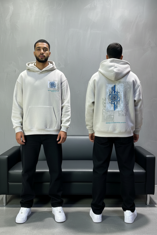 Hoodie beige Design Artistique Bleu Oversize 5012