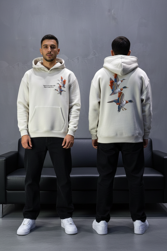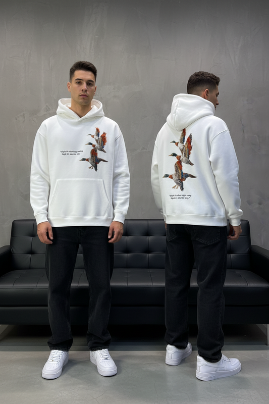 Hoodie Blanc Broderie Oiseaux Oversize 4996
