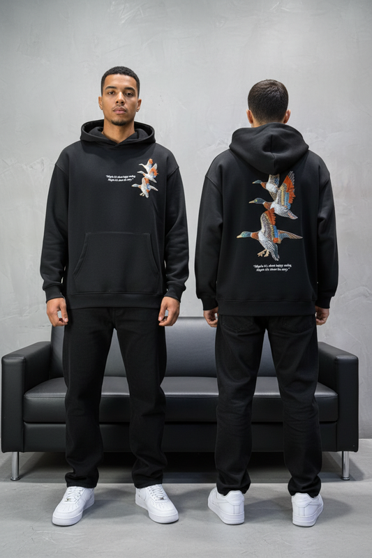 Hoodie Black Broderie Oiseaux Oversize 4996