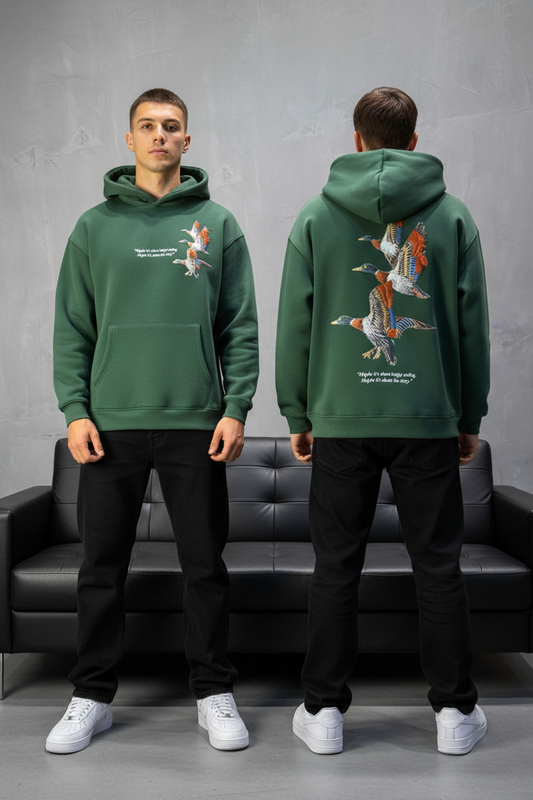 Hoodie vert Broderie Oiseaux Oversize 4996
