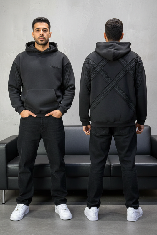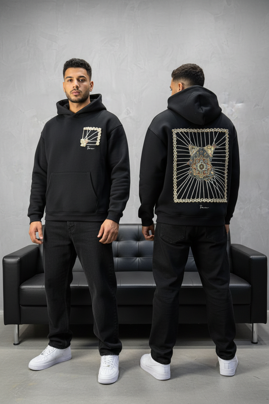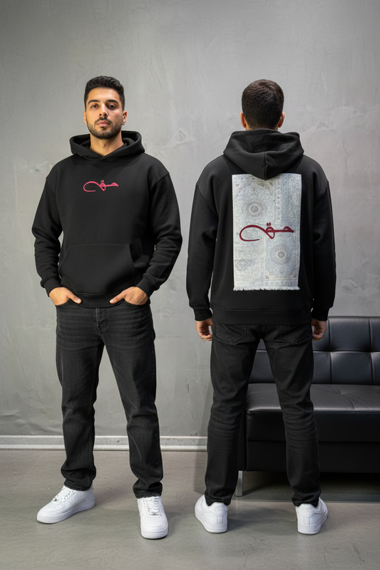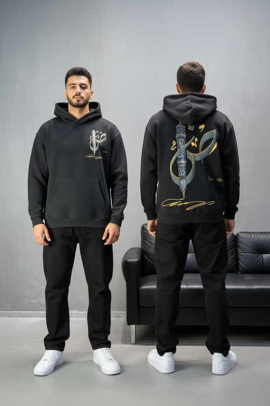 Hoodie noir Broderie Sabre Calligraphie Arabe Sann 5010