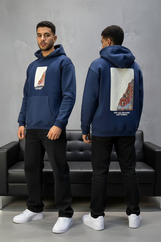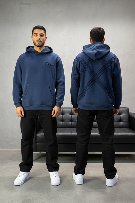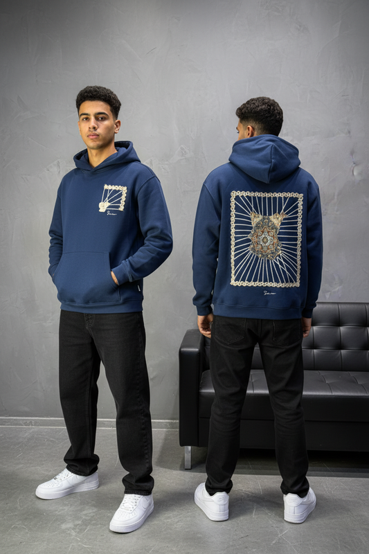 Hoodie blue Broderie Sabre Calligraphie Arabe Sann 5010