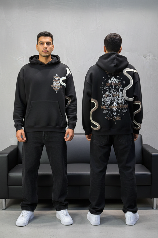 Hoodie Noir Broderie Dragons Argentée 4985