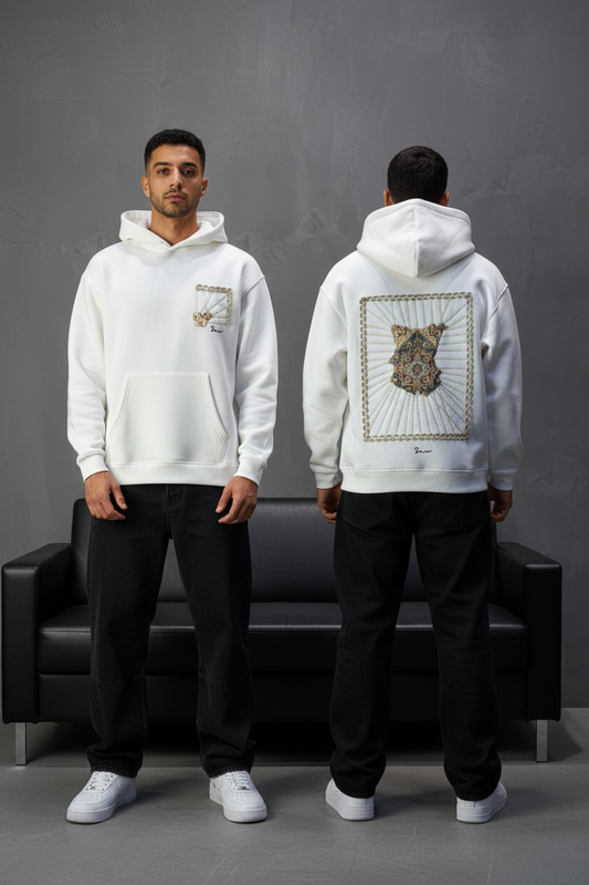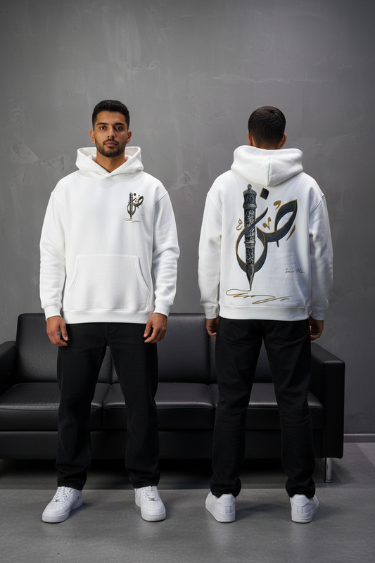 Hoodie Blanc Broderie Sabre Calligraphie Arabe Sann 5010