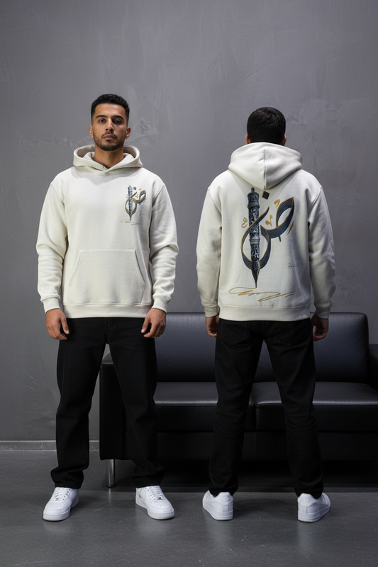 Hoodie beige Broderie Sabre Calligraphie Arabe Sann 5010