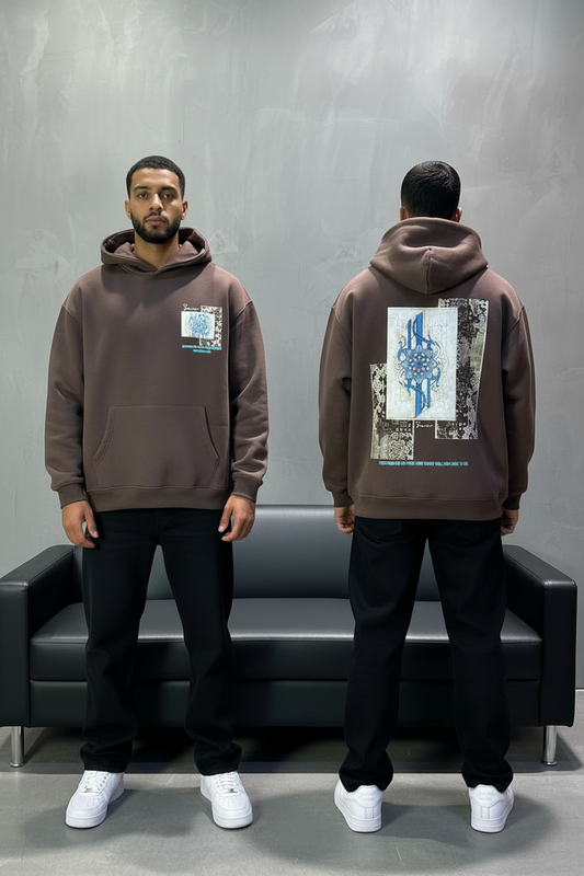 Hoodie Marron Design Artistique Bleu Oversize 5012