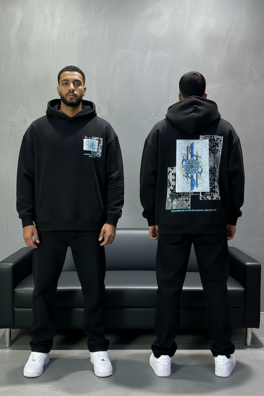 Hoodie Noir Design Artistique Bleu Oversize 5012
